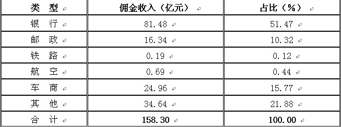 截至2009年三季度,保险兼业代理机构实现佣金收入158.30亿元,同比增长10.41%。