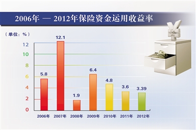 而历史数据显示,2006年-2011年,保险行业资金运用收益率分别为5.8%、12.1%、1.9%、6.4%、4.8%和3.6%,大部分年度的收益率都低于五年期定期存款利率。而2012年的投资收益率,创下了金融危机以来仅次于2008年的新低。